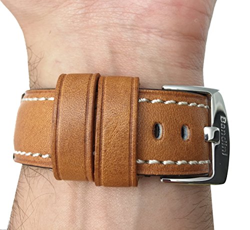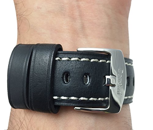 -. Title : 22mm - 24mm, Genuine Italian Leather Watch Strap Band, Double Stitching, Stainless Steel Buckle, Comes in Black, Blue, Brown and Tan