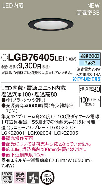 ●寸法(mm):埋込穴φ100・埋込高80