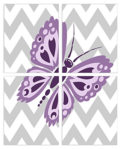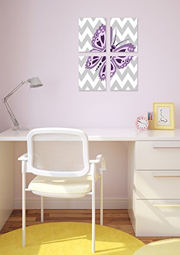 The Kids Room By Stupell Purple Butterfly On Grey And White Chevron 4-Pc. Rectangle Wall Plaque Set, Proudly Made in USA