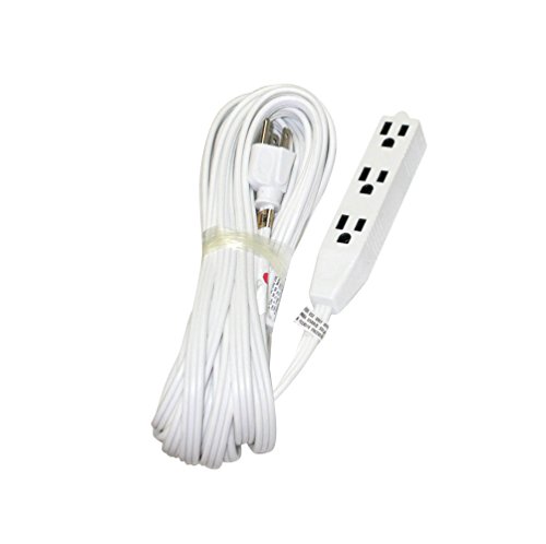 POWTECH Heavy Duty 3 Outlet Grounded Indoor Home Office Extention Cord, 25-FEET, 16 GAUGE (SPT-3) 16 AWG 3, 125V, 1625 Watt, 3 Conducter Polarized Extension Cord, White - UL Listed,PT-3916-25WHT