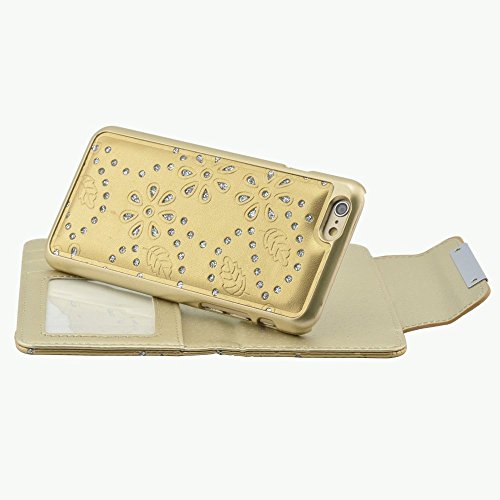 ACO-UINT iPhone 6s Plus Wallet Case,iPhone 6s Plus Detachable 2 in 1 Wallet Case,Bling Glitter Maple Leaf Pattern Premium PU Leather Wallet Case,Folio Flip Detachable Cover Strap Case for iPhone 6s Plus Golden