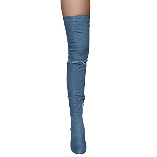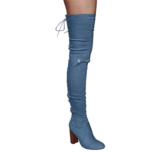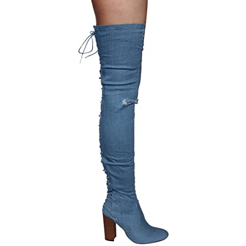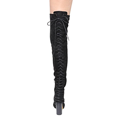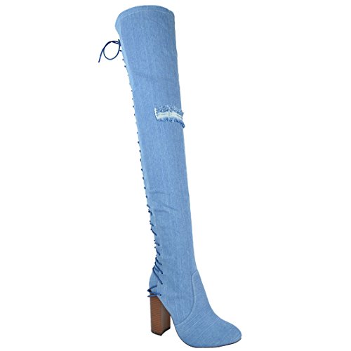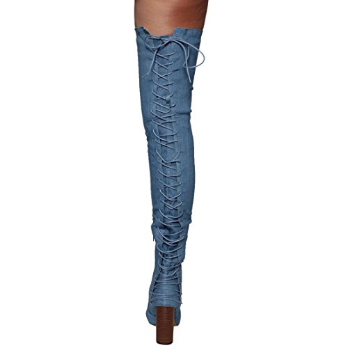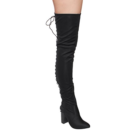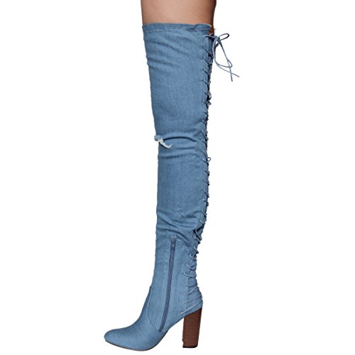 Chase Chloe EE81 Women's Thigh High Corset Lace Up Stacked High Heel Boots