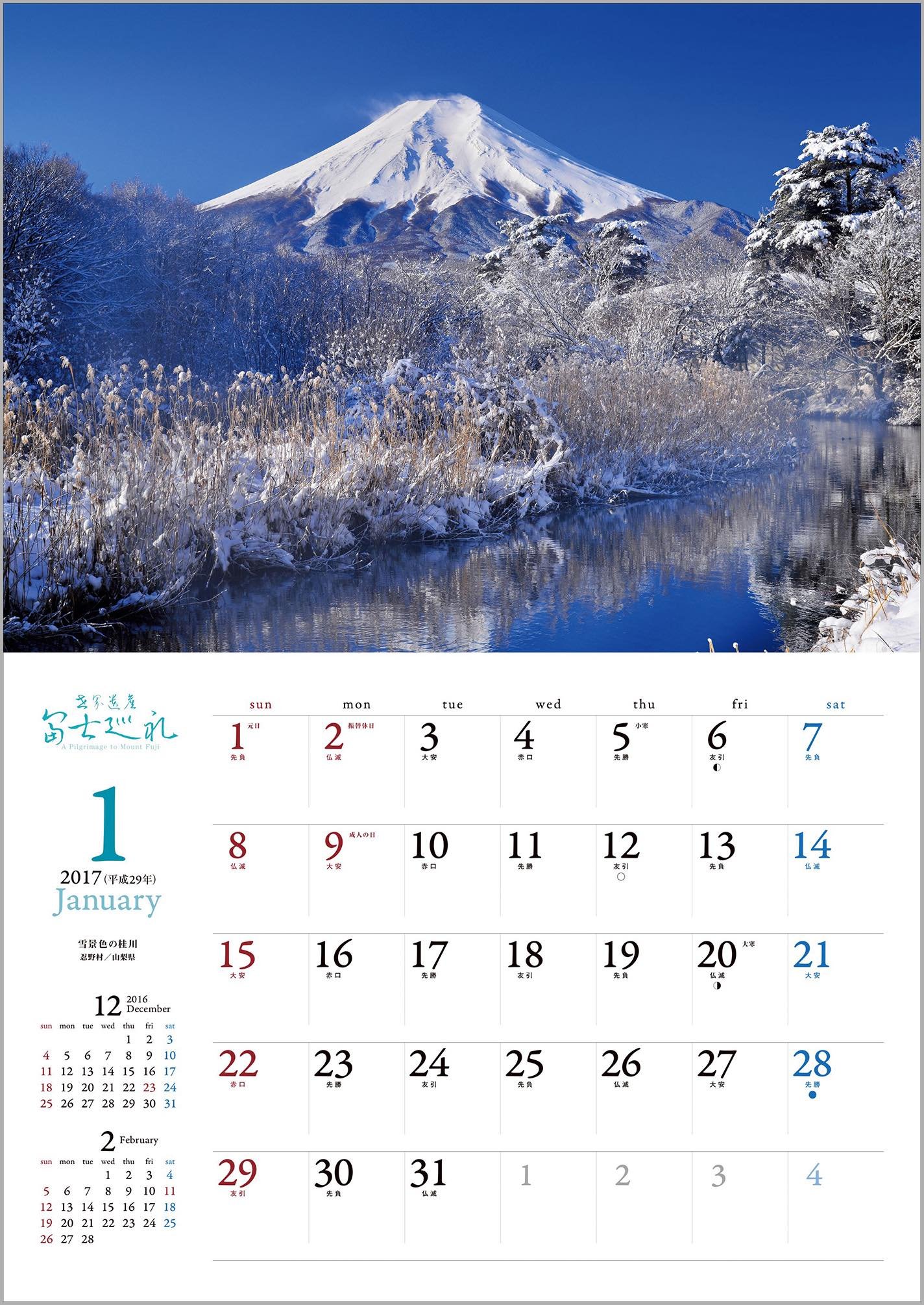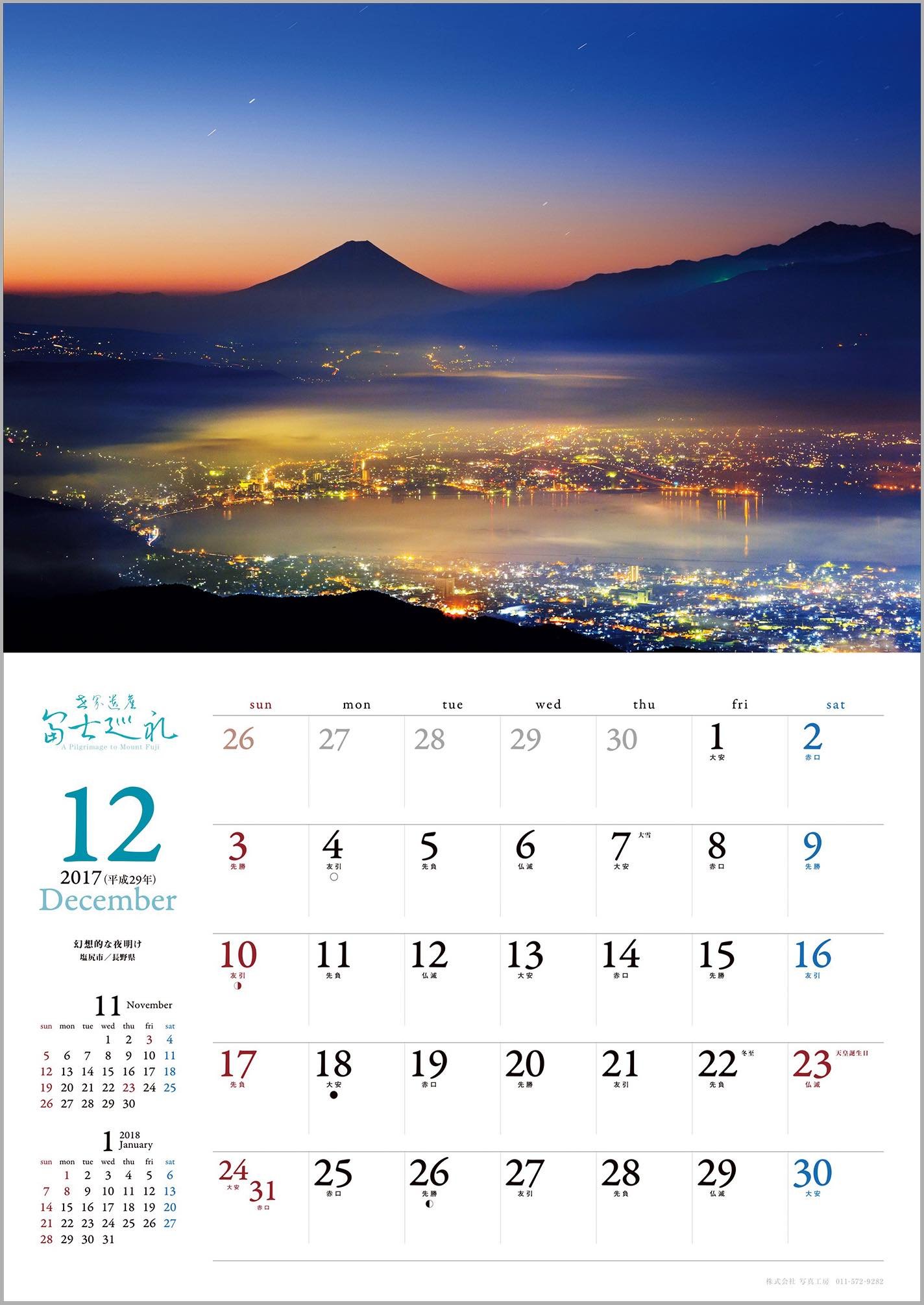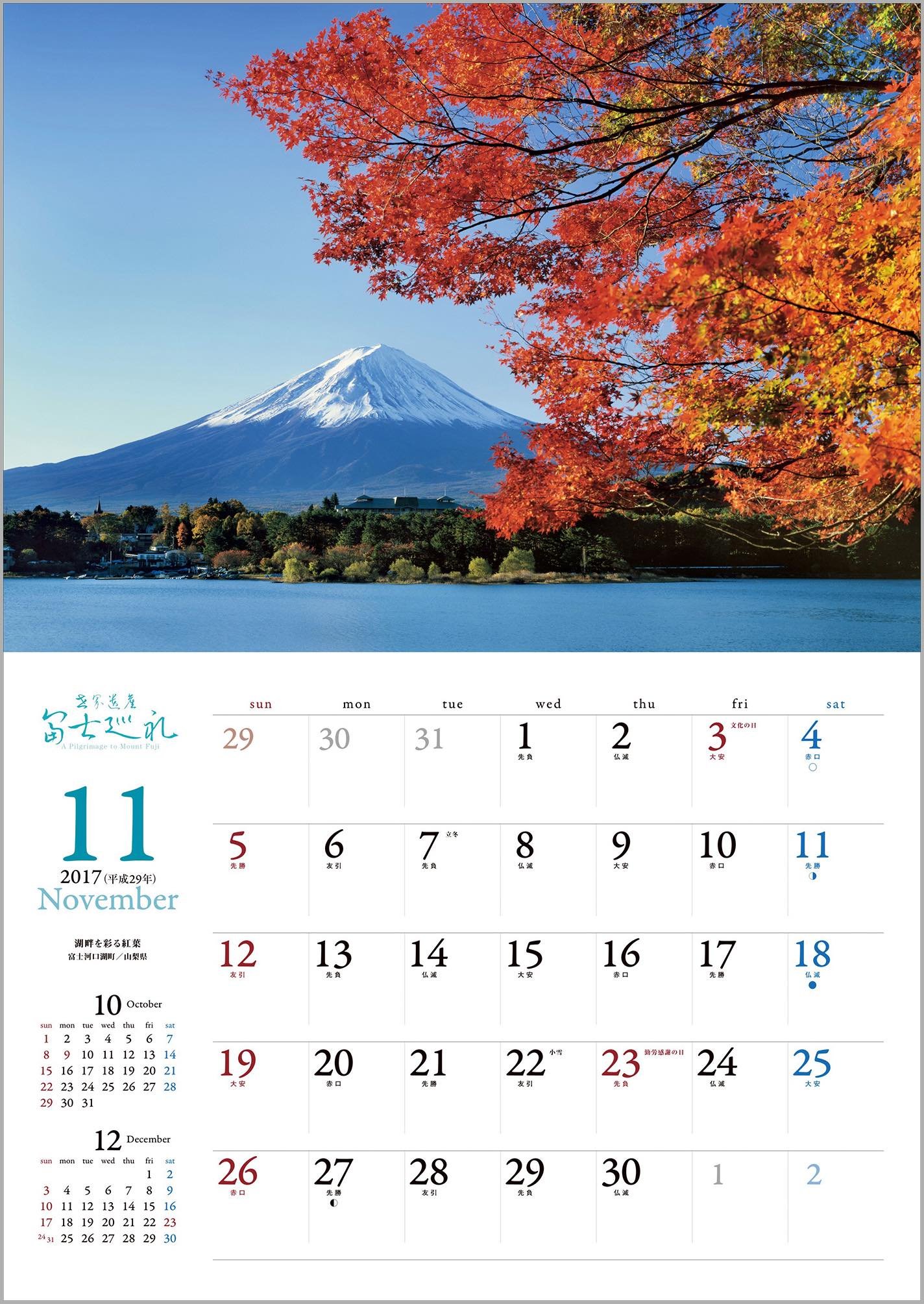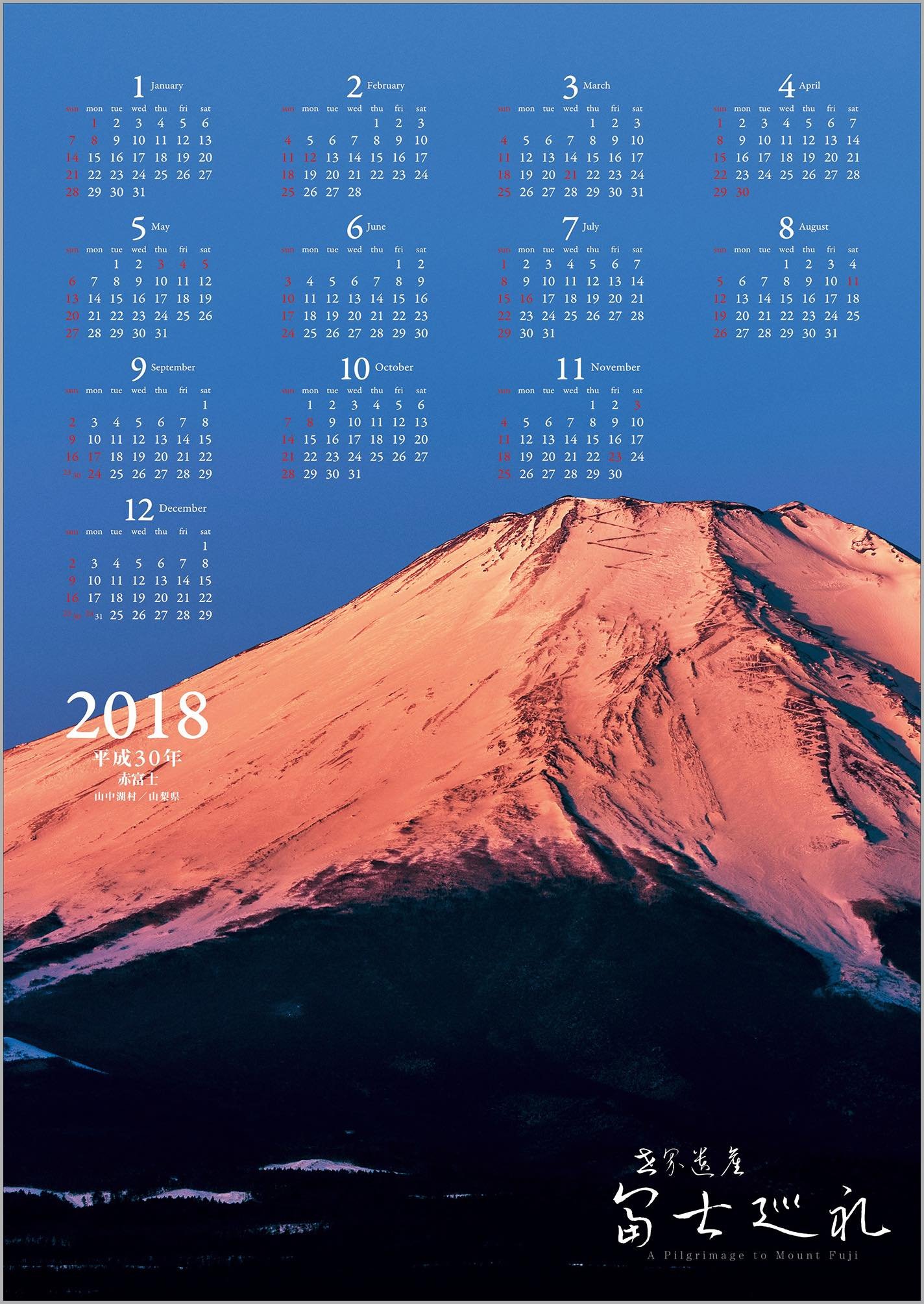 The following year calendar (2018) Red Fuji / Yamanakako village / Yamanashi Prefecture