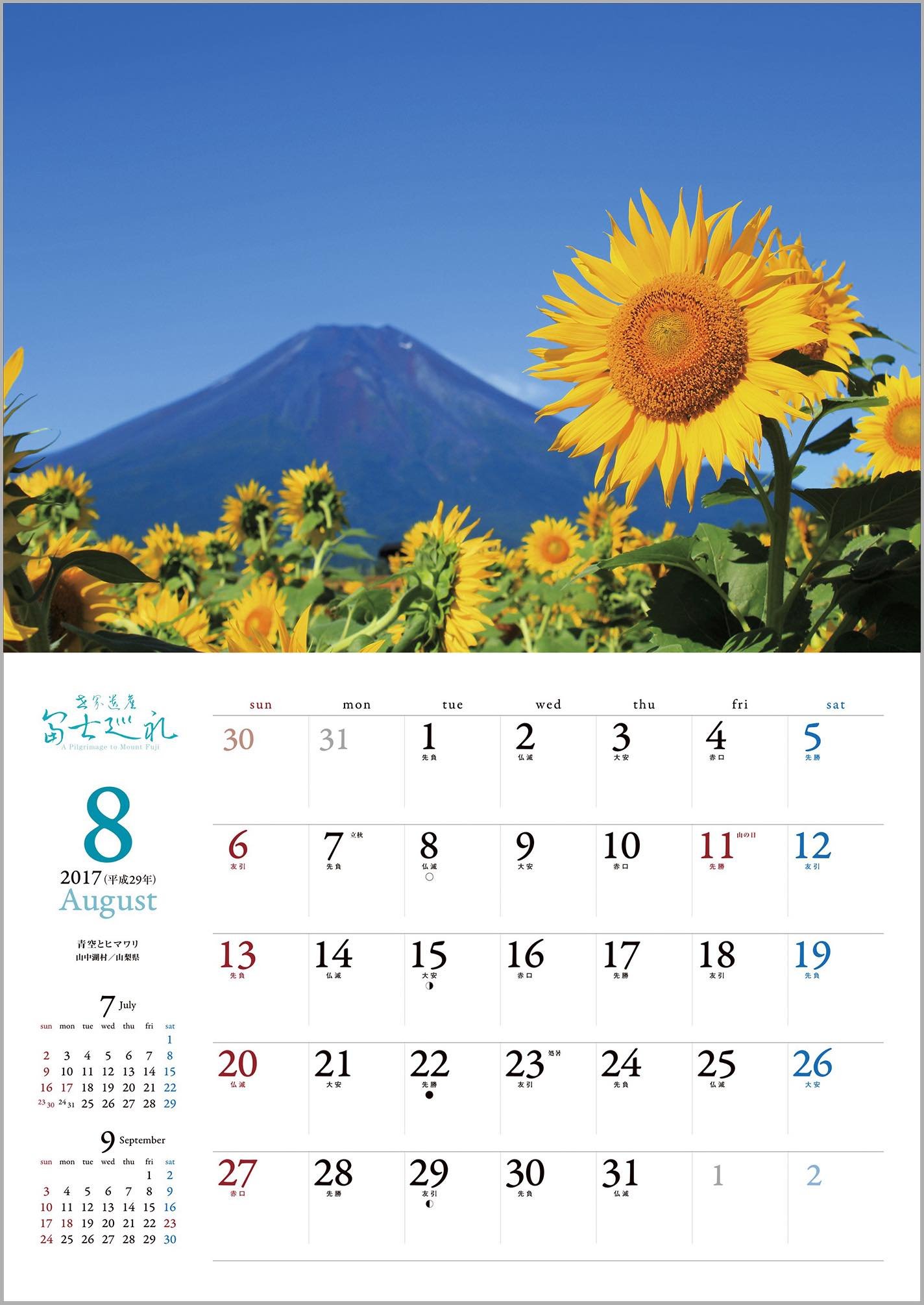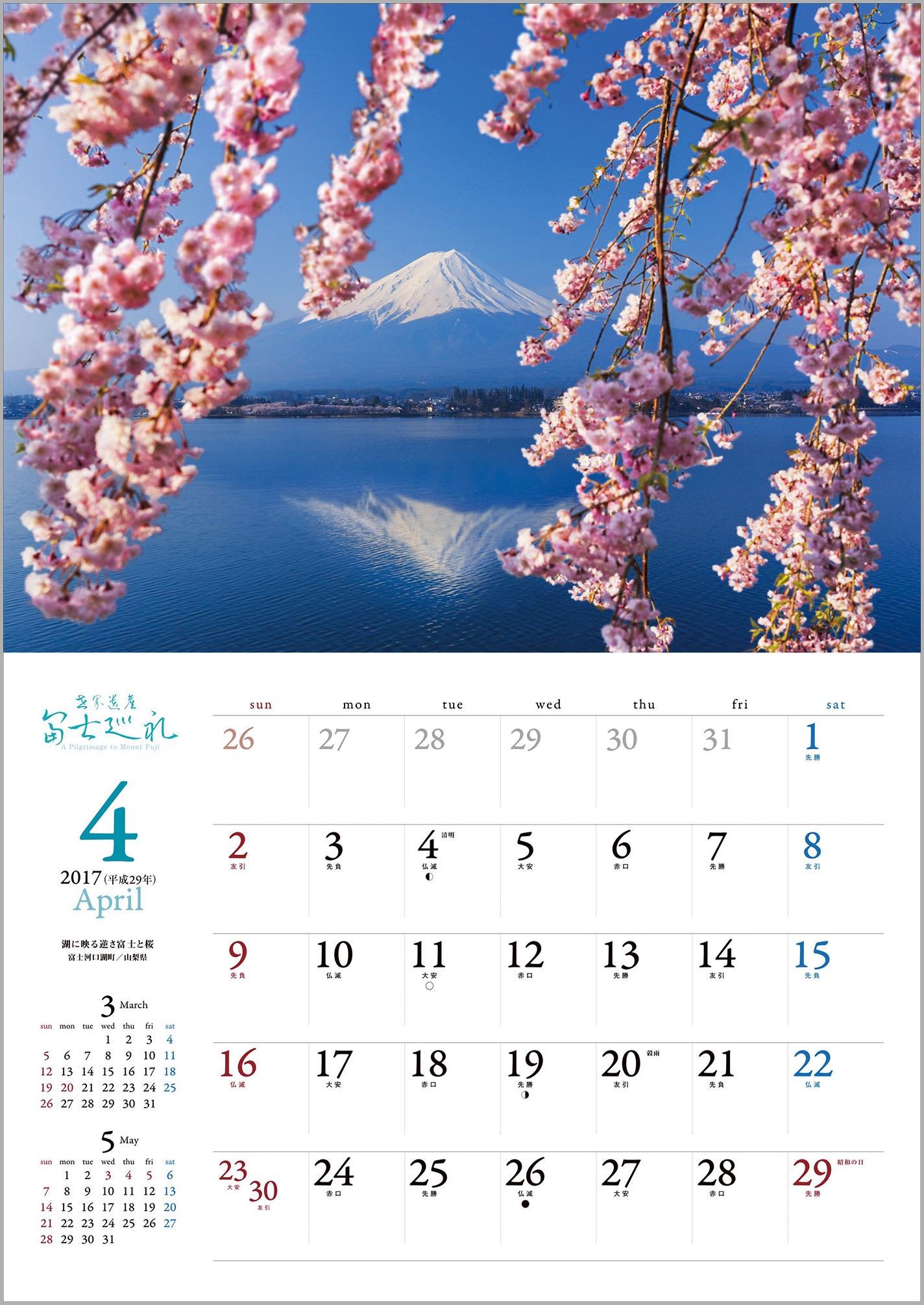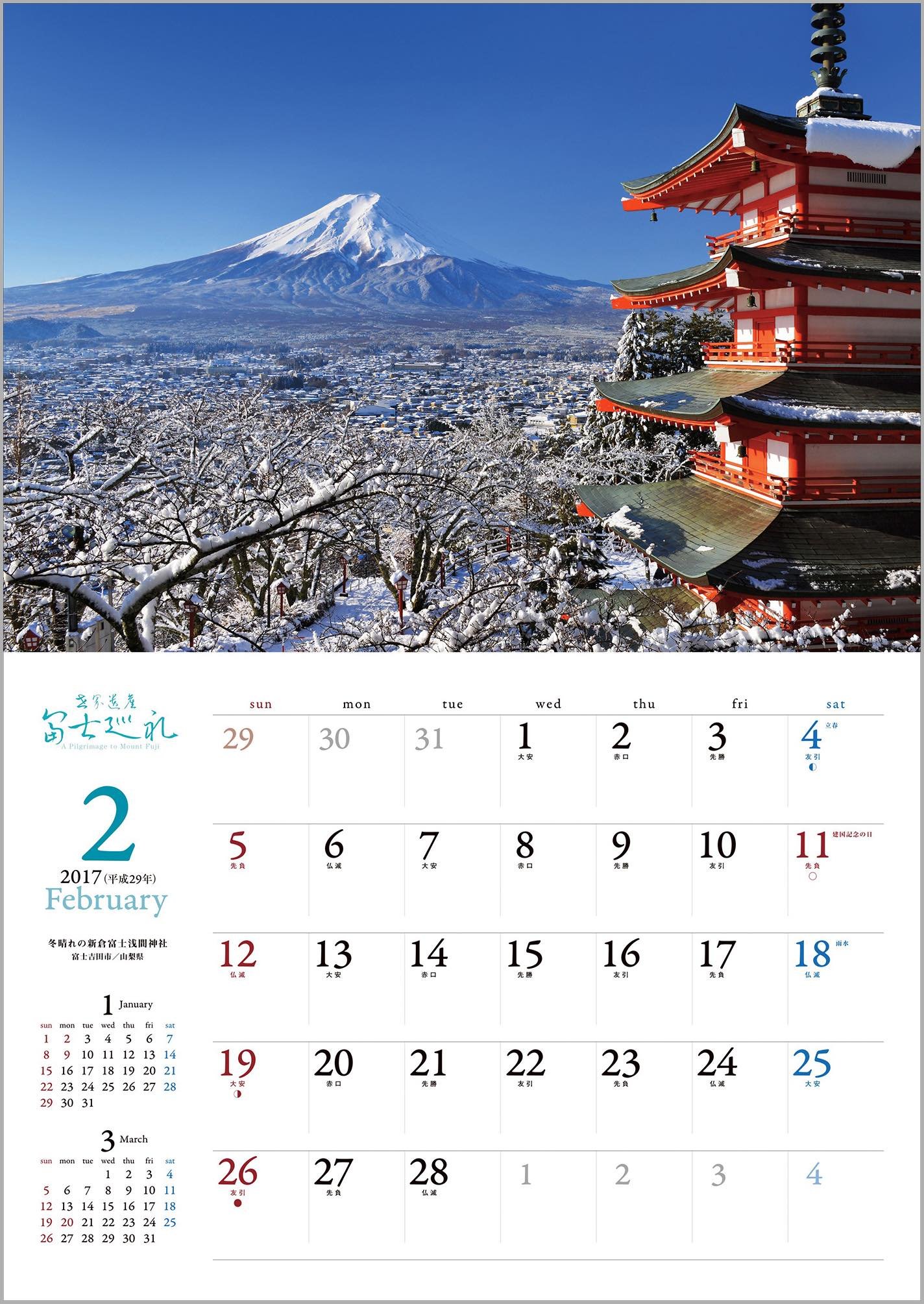 The following year calendar (2018) Red Fuji / Yamanakako village / Yamanashi Prefecture