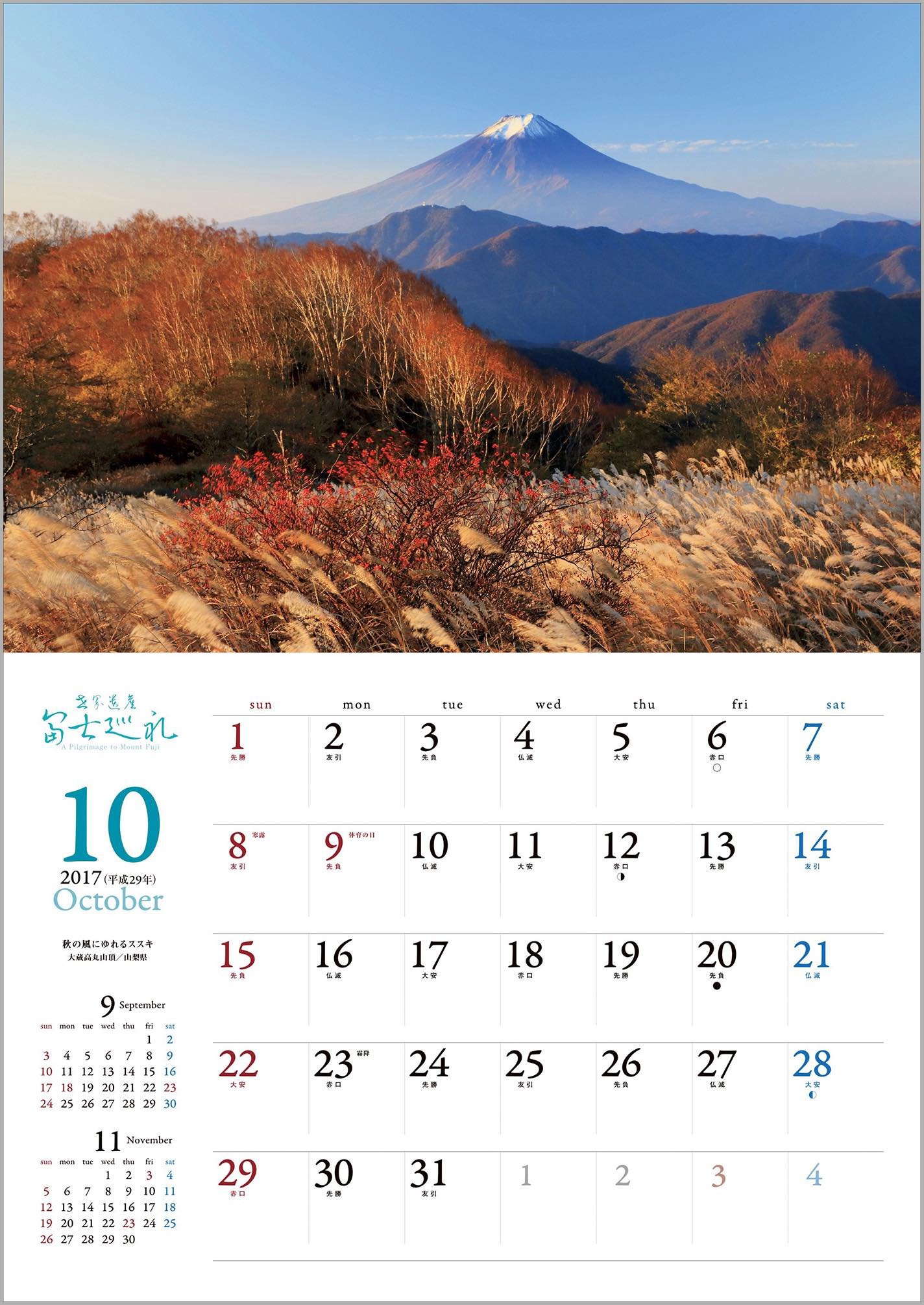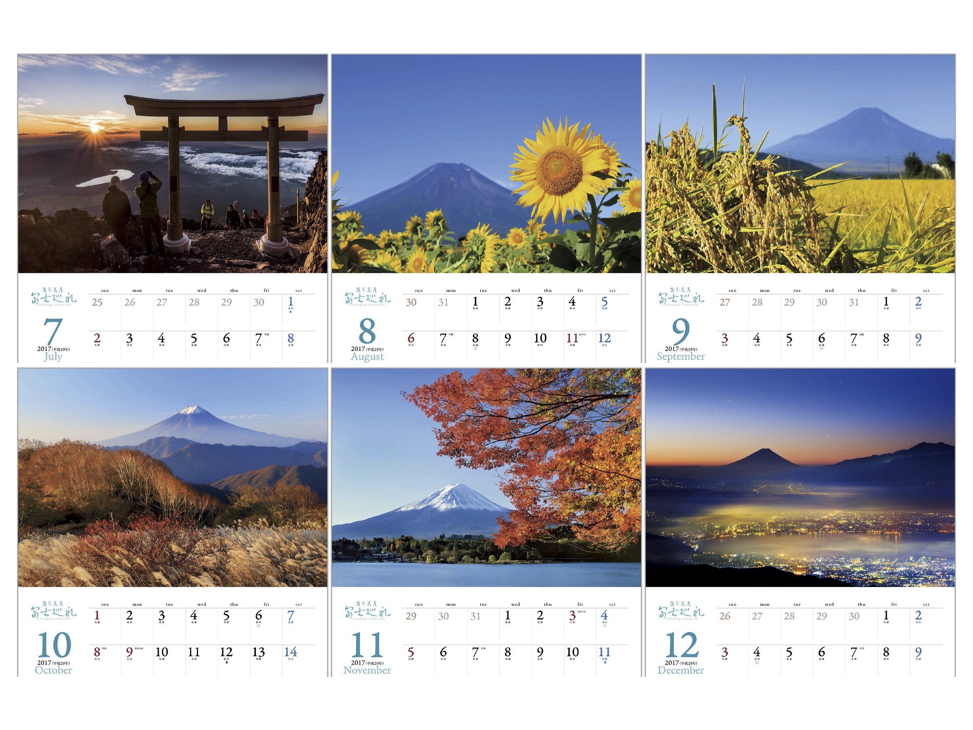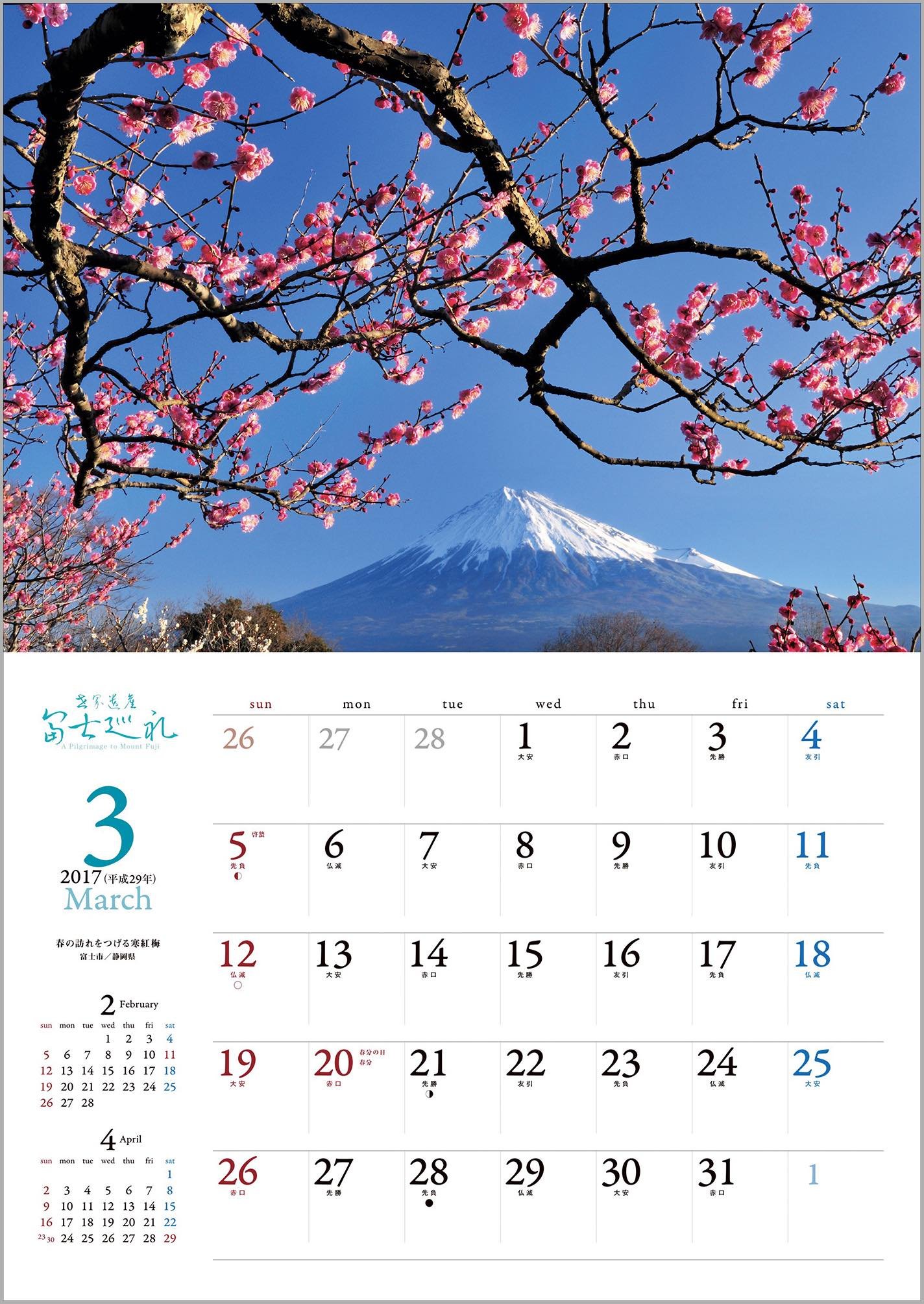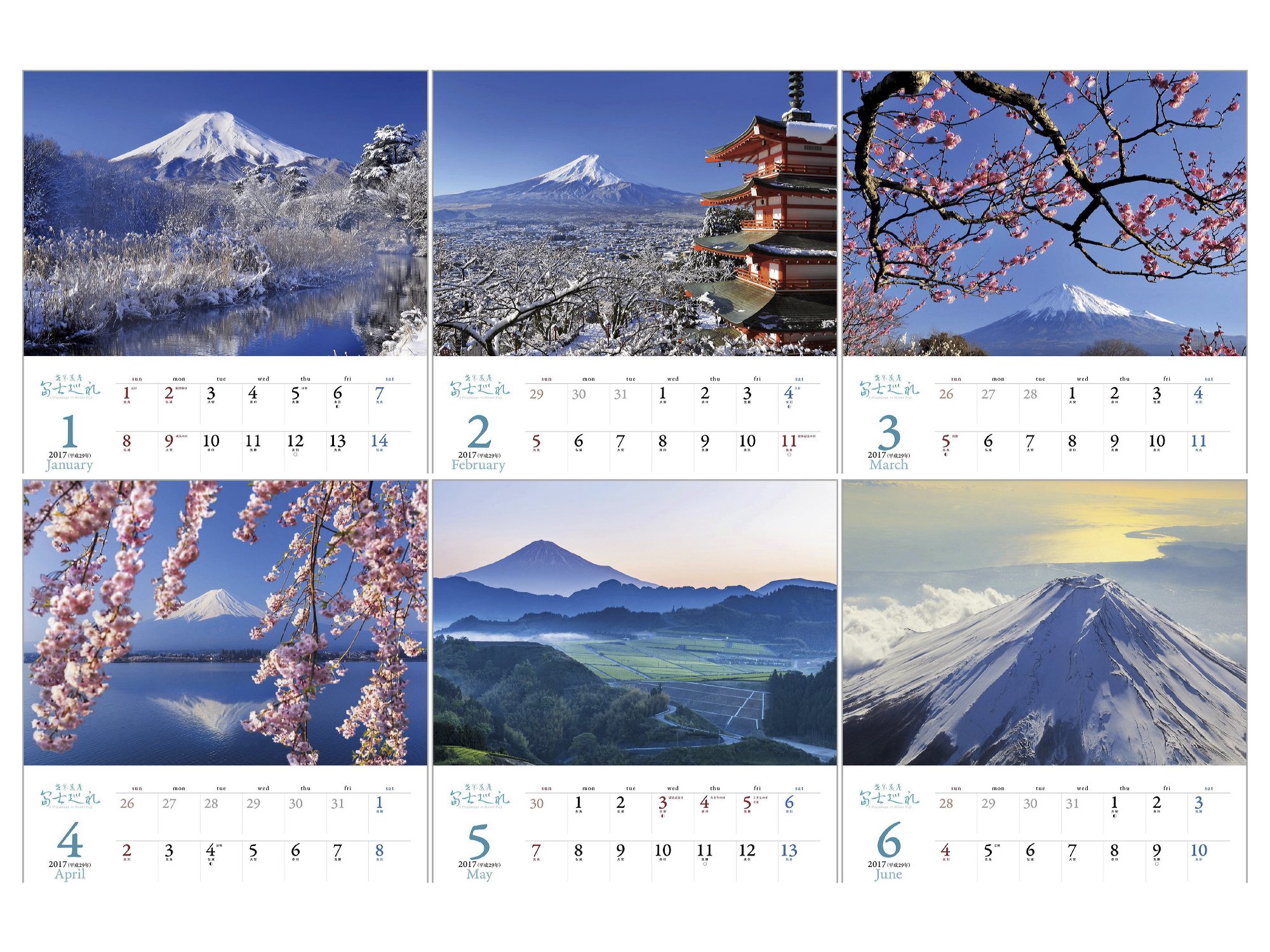 The following year calendar (2018) Red Fuji / Yamanakako village / Yamanashi Prefecture