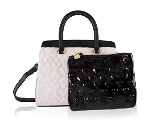 -. Brand : Betsey Johnson -. Department : womens -. Feature : Zip closure, Dual carrying handles 5" drop / Removable Heart Key Chain, Back zip pocket / Separate zippered pouch with wristlet strap in front pocket / Fully Lined Interior with Back 1 wall zipper and 2 slip pockets / Tote: 13" x 10" x 6" (WxHxD) Detachable adjustable strap 23" drop -. Label : Betsey Johnson -. Manufacturer : Betsey Johnson -. Model : BB17040 -. ProductGroup : Shoes -. ProductTypeName : HANDBAG -. Publisher : Betsey Johnson -. Studio : Betsey Johnson -. Title : Betsey Johnson Womens Dip Satchel with Removable Pouch