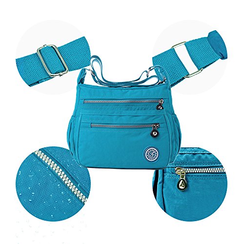 -. Feature : Material:Nylon and fabric lining / Dimension:(L*W*H)11*9*5.5 Inches; It can hold travel essential items in this bag. / Simple and convenient design for outdoor activity, like shopping, park, climbing and so on. / Style:Multi pockets shoulder bag, cross body bag, causal messenger bag, trip bag / Structure: 1 main pouch, 3 front zipper pocket, 2 side pocket and 1 inner zipper pocket