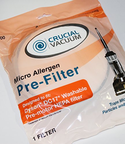 -. Feature : 2 High Quality Washable & Reusable Micro Allergen Pre-Filters / Fits with ALL Dyson DC17 Models: DC17 Animal, DC17 Total Clean, DC17 All Floors, DC17 Absolute And DC17 Asthma & Allergy / Compare to Part # 911236-01 / Absolutely Essential For Allergy Sufferers! / Designed and Engineered by Crucial Vacuum