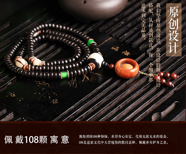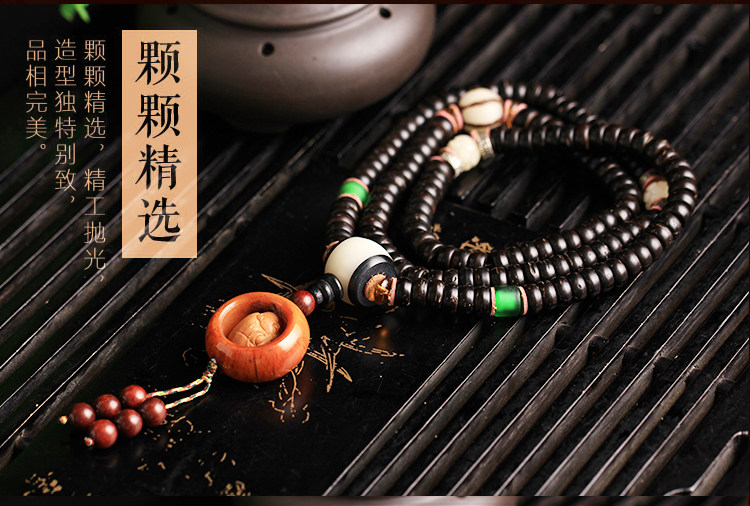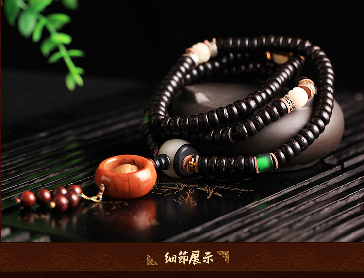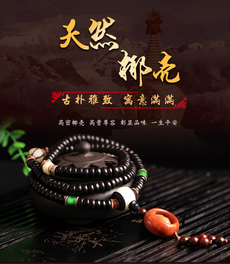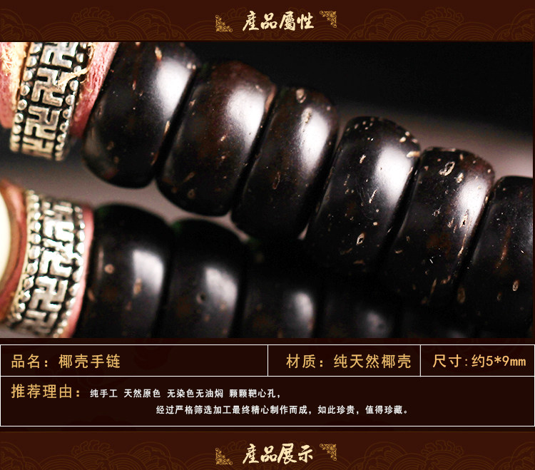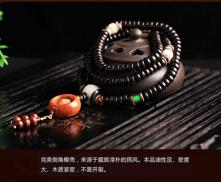 天然海南原色椰壳佛珠108颗手链配橄榄一心向佛油润黑亮包邮男女