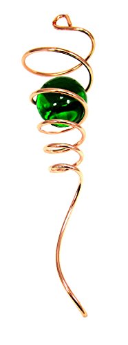Shipityourway 11" Gazing Ball Spiral Tail Cyclone Wind Spinner Stabilizing Accessory Optical Illusion Yard Twister with String and Hook (Copper Wire, Green Glass Orb)