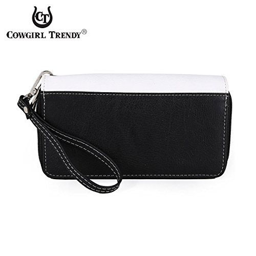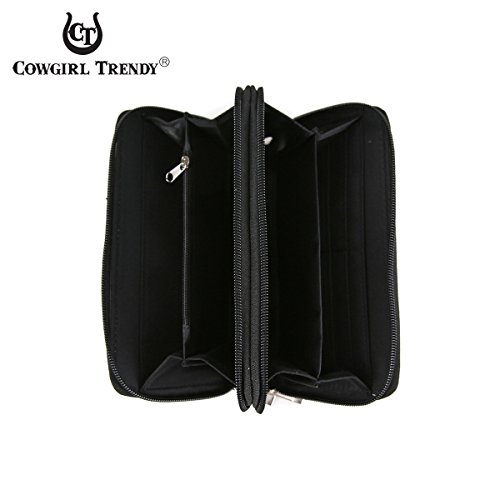 -. Feature : Made from Vegan Leather - High Quality PU - with a Cotton/Polyester blend lining / Dimensions: 7.75"W x 4.5"H x 1"D - 6" Attachable Wristlet Strap included / Dual Zipped Closures open into 2 Separate Compartments / 8 Interior Card Holders, 4 Per Compartment / Interior:2 check book pockets, 2 cash pockets, 1 zipped coin pocket for convenient organization