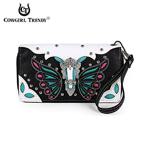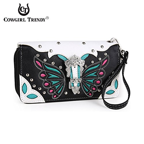 -. Title : Western Wallet - Colorful Butterfly Design Wallet accented with a Silver Buckle, Rhinestones, and Studs