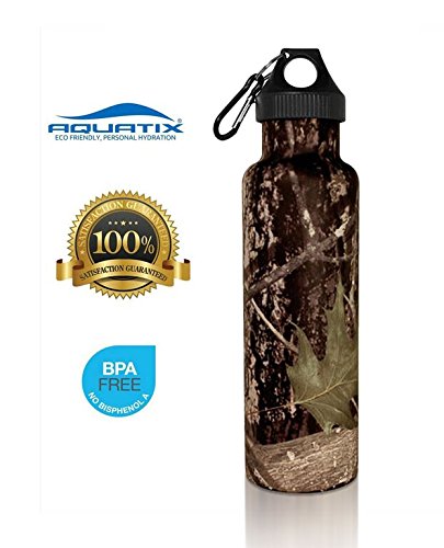 The True Timber Camo 21 oz Double Wall Insulated Stainless Steel Water Bottle is perfect for use at the gym, at the office, around your house and anywhere you need to take your beverage of choice with you. Made from durable and sturdy PREMIUM QUALITY, Top Chef 18/8 FOOD GRADE STAINLESS STEEL, this Duck Commander Sporty 21 ounce water bottle is a great eco friendly sports bottle. The double wall insulated water bottle is PERFECT for carrying while hunting, walking, hiking, camping, use at the gym or just on the go- as it fits great in most car cup holders. No more spills and messes while driving! Ditch those plastic water bottles! GO HEALTHY with this BPA Free, FOOD GRADE stainless steel water bottle that holds a large capacity of liquids 21 fluid ounces and no longer worry about toxins and chemicals leaching into your beverage. Drink crisp, clean, healthy and refreshing drinks from Your Duck Commander Water Bottle every time. Just Fill and Go! Stay hydrated and DRINK MORE WATER with this large capacity 21 ounce water bottle. Double vacuum insulated wall construction contributes to hot teas, soup, coffee or other blends being consistently hot for up to 12 hours. And, for cold water, smoothies, soft drinks, or anything you may need very cold, 24 hours of insulated confidence, guaranteed cold, period! The bottle will not "sweat", meaning it will not create condensation which may leave a "ring" of liquid on your expensive buried walnut side table. Easy to hand wash or clean, NO aftertaste after cleaning. COLD LIQUIDS or HOT LIQUIDS! This is a double wall insulated water bottle that is made of 18/8 food grade stainless steel water bottle! No other bottle has all the features of our Aquatix Sport Bottle!Feature