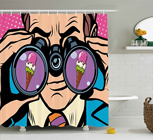 Comics Decor Shower Curtain by Ambesonne, Business Man Wants Ice Cream Pop Art Retro Style Parody Humor Cartoon Illustration, Fabric Bathroom Decor Set with Hooks, 70 Inches, Multi