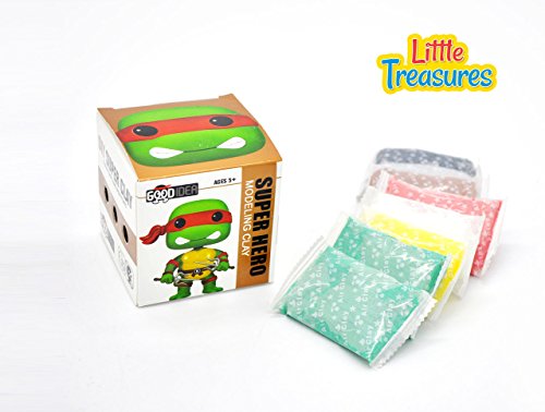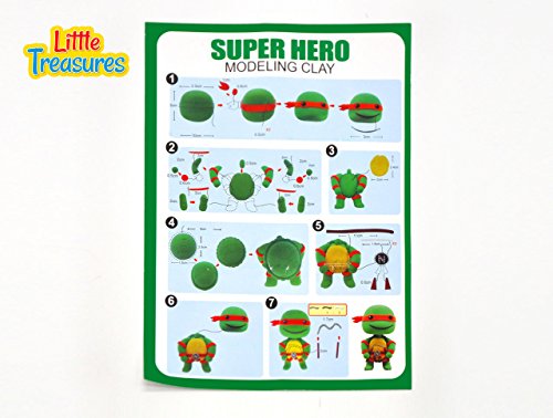 The Little Treasures high quality super hero modelling clay set is the perfect gift for both boys and girls over the age of 5 years old. The set is perfect for allowing your kids to get creative with their imaginations and also let them train their instruction following skills with the detailed instruction manual taking your child by the hand and allowing them to follow the step by step process with added illustrations making them able to put together their very own super hero by themselves, using their independence and creativity. The set comes with 7 different colours of well-packaged high quality clay which your little one will love putting together to create the super hero depicted on the packaging. The child's finished product will be a ninja turtle which they can then enjoy playing with time and time again while it serves as a reminder of the independence and creativity they used when using their artistic talent when creating their very own super hero. Description: The Little Treasure's Superhero Modelling Clay Set comes complete with beautifully designed packaging to entice your child's imagination. The set is perfect for boys and girls over the age of 5. The set comes with 7 separately packed colours of clay which your little one will use to construct the super hero. Alongside the clay is a detailed, illustrated instruction manual which your child can use as a visual aid when they put together the toy - making the construction of the toy something your child can do by themselves or with minimal help, remaining challenging enough to give your child a sense of achievement when it has been completed.Feature