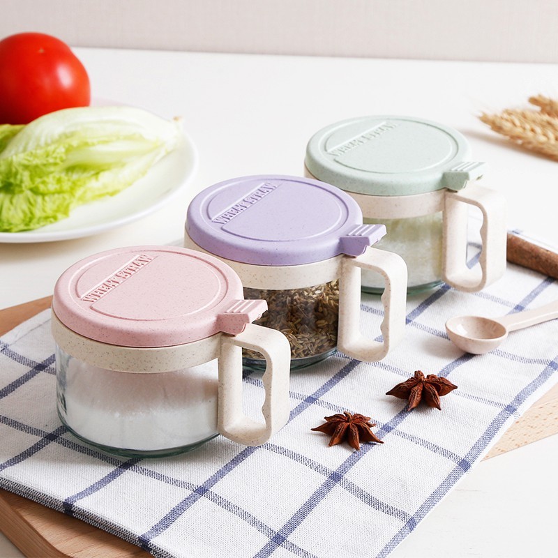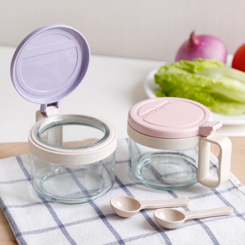 "Material": the use of pp+ glass, health and environmental protection. "Function": Health and Environmental protection, the inside seasoning at a glance, convenient to look for. "Features": Equipped with small spoon, pressure-type jar cover, open cover, close all very convenient.