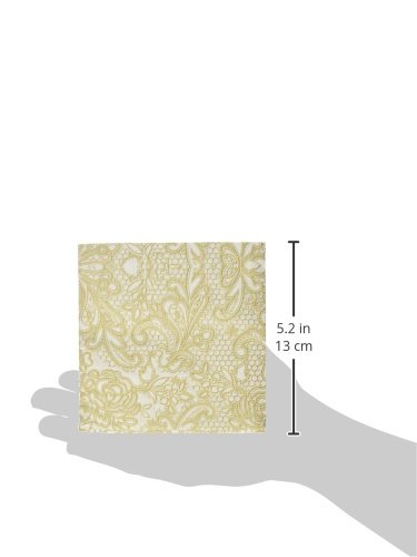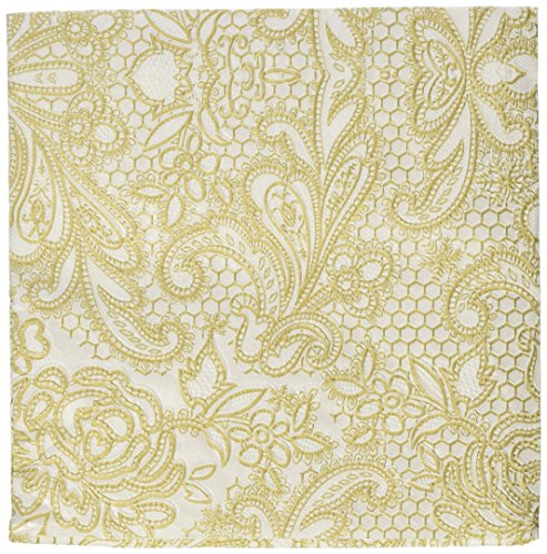PAPERPRODUCTS DESIGN 1251108 BEVERAGE/COCKTAIL EMBOSSED LACE ROYAL ELEGANT PAPER NAPKIN, 5 BY 5-INCH, PEARL/GOLD