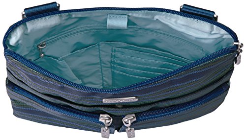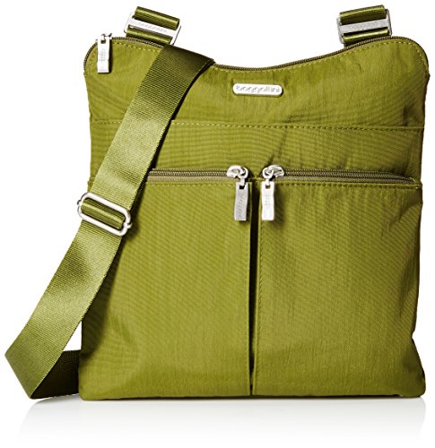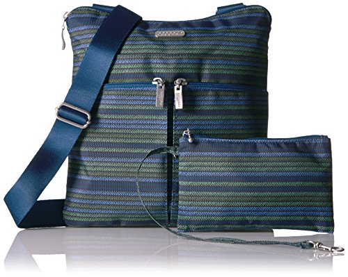 The Baggallini Horizon crossbody bag is a slim profile bag that is ideal as a travel bag as well as an everyday one! The crossbodystyle and 52” adjustable strap keeps your hands freeand the interior and exterior pockets have a spot for all your necessities, keeping them organized and neat. The zippered exterior pockets keep your most important items, like a cell phone, camera or credit card, close by, easy to access and safe. Made of lightweight, water-resistant nylon, this spacious bag can hold it all without becoming too heavy. Additionally, this bag comes with a removable wristlet.Feature