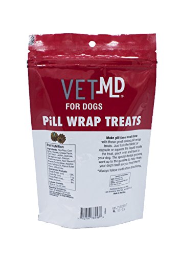 Giving dogs medicine can sometimes be a challenge. They may run the other way when they see you coming with the pill bottle or spit the pill out when you try to give it to them whole. These peanut butter flavored pill wrap treats are the perfect solution to trick your dog into taking the medication they need. Simply slip the tablet in the treat, pinch over, and give it to your dog just like you would a treat. To make it even better, the wrap has dental grooves that help clean the gum line and teeth while they chew. Directions: Feed as a treat to your pet. Ingredients: Rice flour, corn syrup, glycerin, cornstarch, lecithin, dextrose, carrageenan gum, calcium propionate, sorbic acid, vitamin E powder, purified water, ascorbic acid, safflower oil, peanut butter flavor, artificial color. Safety Warnings: Keep out of reach of children and other pets to avoid unwanted consumption.Feature