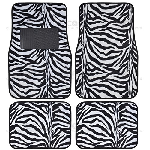 -. Title : A Set of 4 Universal Fit Animal P.R.Int Carpet Floor Mats for Cars / Truck - Zebra White Tiger