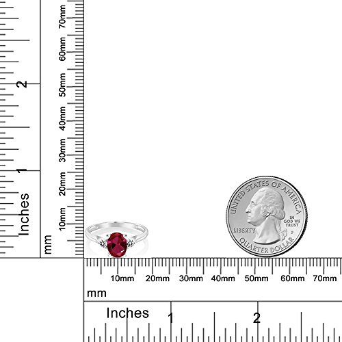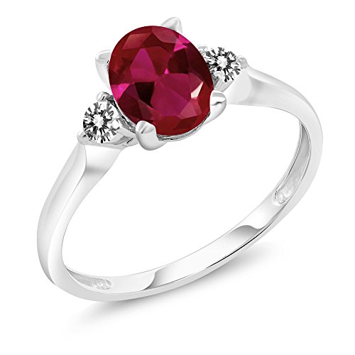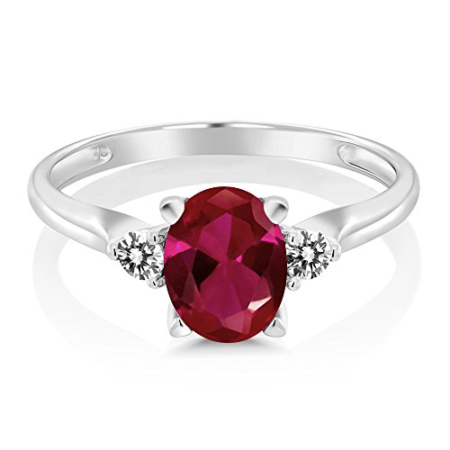 -. Title : 14K White Gold 1.28 Ct Red Created Ruby White Diamond 3-Stone Ring