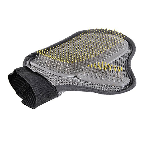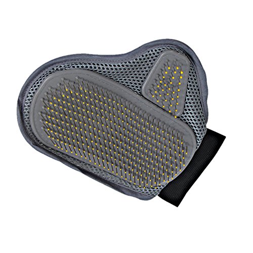 Size: ? Length 9.25 inches ? Width 7.28 inches Material: ? Rubber Breathable Mesh cloth. ? Adjustable Velcro strap Gentle rubber massages and stimulates circulation. Removes loose pet hair, and traps it in the glove so that no fur goes flying. Stop chasing your pet! Let them come to you for grooming they'll love. Perfect for all coat types, long or short hair, wet or dry. Adjustable Velcro strap fits all hands.