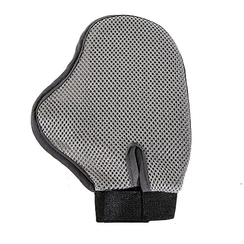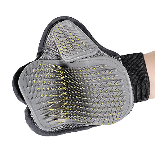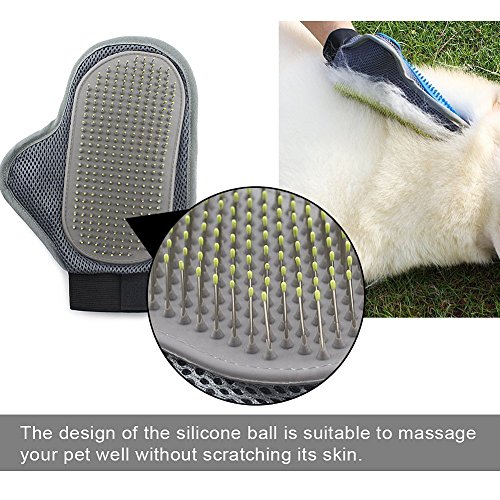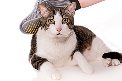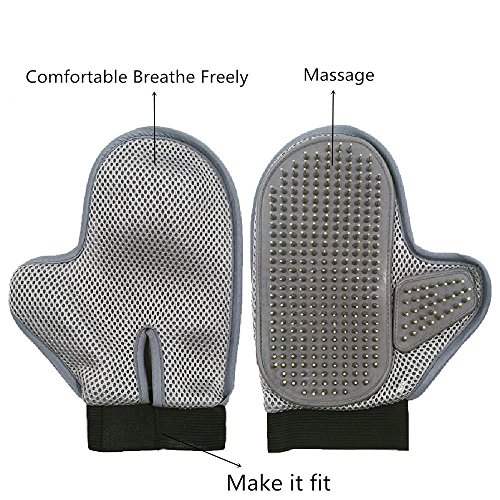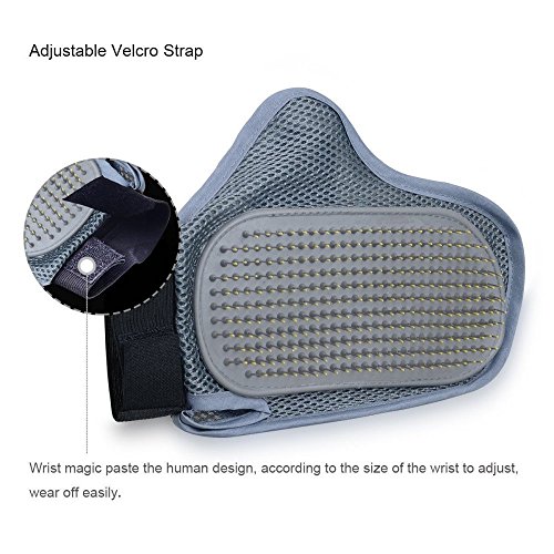Pettom grooming gloves is easy-to-use, speeds up grooming and makes it relaxing and enjoyable for your pet. Just slip your hand in and it works for both left and right hands then tighten the wristband and work through your pet's fur.