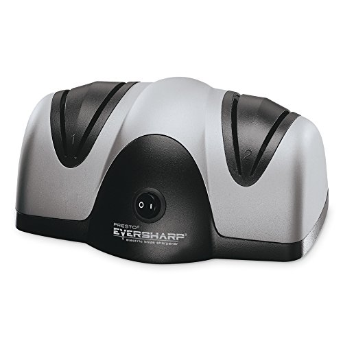 Two-stage sharpening system quickly and easily sharpens most any non-serrated blade for professional results in the convenience of your home. (Presto knife sharpener is 120 volts)