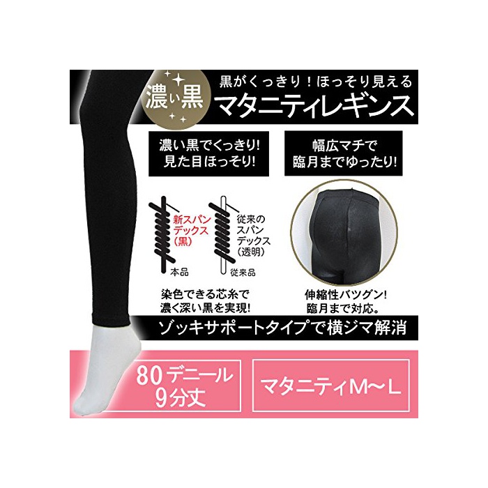 원본상품명: 1573 マタニティレギンス 80デニ?ル 9分丈 UVカット 着?【漆? ブラック M~L】 見た目すっきり&ほっそり【ロ?ズマダム rosemadame マタニティ?】 leggin