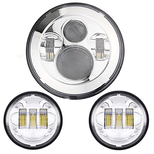 7" Chrome Harley Daymaker Led Headlight Auxiliary Lamp Led Light Bulb + 2Pcs 4.5 Inch 30W CREE LED Motorcycle Fog Light Led Fog Lamp for Harley Davidson Motorcycle