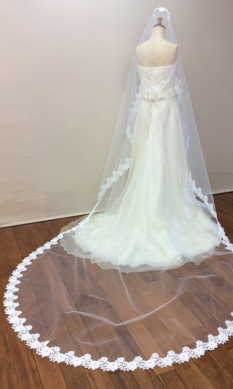 バラのレースモチーフをあしらった上品な マリアベールです。長さは 3メートルあり、バックスタイルも華やかに彩ってくれます。【検索キーワード】ウェディングドレス/ウエディングドレス/白ドレス/マリッジ/ブライダル/ガーデンウェディング/フォトウエディング/花嫁/新婦/ブライズ/挙式/結婚式/披露宴/パーティ/パーティー/チャペル/教会/人前式/セレモニー/海外/リゾート/ホテル/式場/2次会/1.5次会/前撮り/アクセサリー/ヘアアクセ/ウエディング小物/ウェディング小物/Wedding/Bridal/ギフト/プレゼント/贈り物/花/フラワー