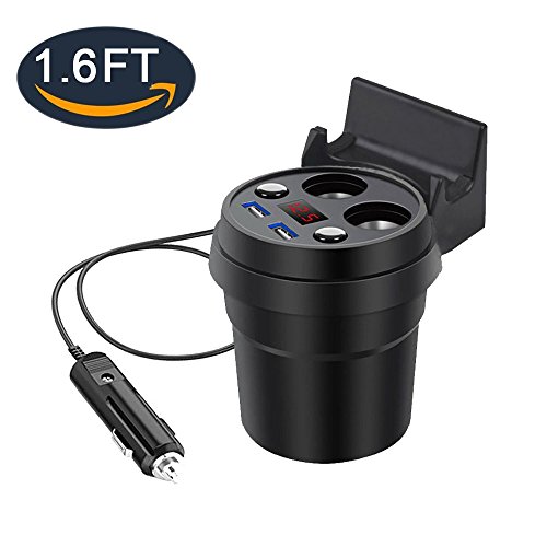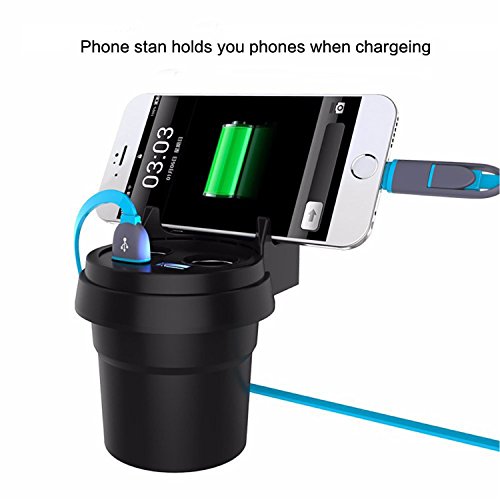 NTALL 12-24V Car cup charger with Phones Holder and 3.1A USB Charging Ports with 80W Cigarette Lighter Socket and Battery Monitoring Car Power Adapter for iPhone,Galaxy,Xperia, GPS,Dashcam