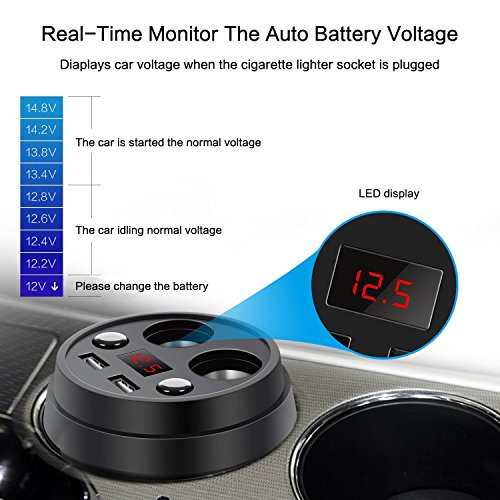 - ★ LED VOLTAG DIAPLSY --- Compact design with LED display monitoring your car battery. When car voltage is less than 12V, warning with flashing number on the display.