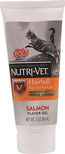 -. Binding : Misc. -. Brand : Nutri-Vet -. Feature : Two 3 oz tubes of salmon-flavored hairball paw gel / Helps support normal shedding / Natural oils and lubricants that help reduce hairball formation in cats of all ages / 1/4 tsp once or twice daily / Convenient way to reward cats and help them stay active and vital -. Label : Nutri-Vet -. Manufacturer : Nutri-Vet -. PackageQuantity : 1 -. ProductGroup : Pet Products -. ProductTypeName : PET_SUPPLIES -. Publisher : Nutri-Vet -. Studio : Nutri-Vet -. Title : Nutri-Vet Feline Hairball Paw Gel, Salmon 3 oz (pack of 2)