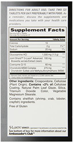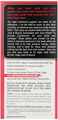 -. Binding : Health and Beauty -. Brand : Osteo Bi-Flex -. EAN : 0766443563181 -. Feature : Helps strengthen your joints / Supports muscle health / Includes Joint Shield, Glucosamine, Chondroitin and Co Q-10 / 2 coated tablets per day / These statements have not been evaluated by the Food and Drug Administration. This product is not intended to diagnose, treat, cure or prevent any disease. -. IsAdultProduct : 0 -. Label : Osteo Bi-Flex -. LegalDisclaimer : Actual product packaging and materials may contain more and/or different information than that shown on our Web site. We recommend that you do not solely rely on the information presented and that you always read labels, warnings, and directions before using or consuming a product. Content on this site is for reference purposes and is not intended to substitute for advice given by a physician, pharmacist, or other licensed health-care professional. You should not use this information as self-diagnosis or for treating a health problem or disease. Contact your health-care provider immediately if you suspect that you have a medical problem. Information and statements regarding dietary supplements have not been evaluated by the Food and Drug Administration and are not intended to diagnose, treat, cure, or prevent any disease or health condition. ABC Wholesale assumes no liability for inaccuracies or misstatements about products. -. Manufacturer : Osteo Bi-Flex -. MPN : 56318 -. NumberOfItems : 1 -. PackageQuantity : 1 -. PartNumber : 56318 -. ProductGroup : Health and Beauty -. ProductTypeName : HEALTH_PERSONAL_CARE -. PublicationDate : 2014-03-14 -. Publisher : Osteo Bi-Flex -. ReleaseDate : 2014-03-11 -. Size : 74 Count -. Studio : Osteo Bi-Flex -. Title : Osteo Bi-Flex Edge Joint and Muscle Capsules, 74 Count -. UPC : 784922880918