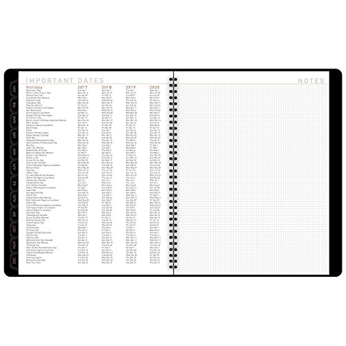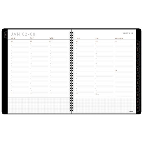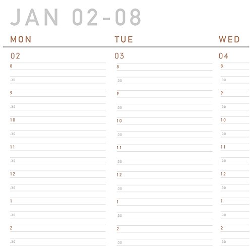 -. Feature : Contemporary weekly / monthly appointment book has a unique cover and modern design. Planner runs 12 months, January - December. / Two page weekly spreads list half-hourly appointment times from 8:00 a.m. and 5:30 p.m. Monday - Friday. Weekends are untimed. / Two page monthly spreads are tabbed for quick page turning. Daily blocks are unruled.