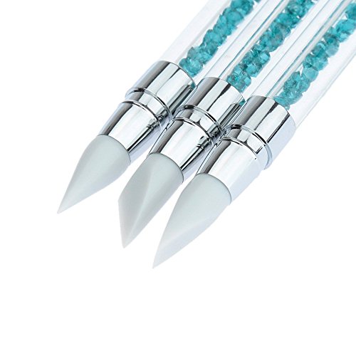 Feature : 3Pcs GEL Nail Art Carving Pen Brushes Silicone Head Acrylic Handle Salon Tool Set / Delicate design, silicone head, clear acrylic tube, decorated crystal rhinestone. / Dual heads, for different functions, meeting different needs. / Soft head, can be used to carve flower and make patterns on your nails. / Comfortable and easy to handle.