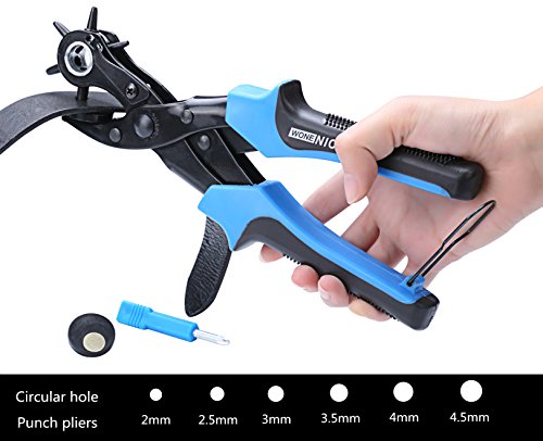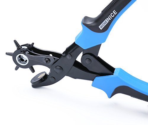 WoneNice Revolving Leather Hole Punches -2 Years Warranty -Professional Heavy Duty Belt Hole Puncher Tool - Easily Punches Perfect Round Holes in 2.0 mm- 4.5 mm