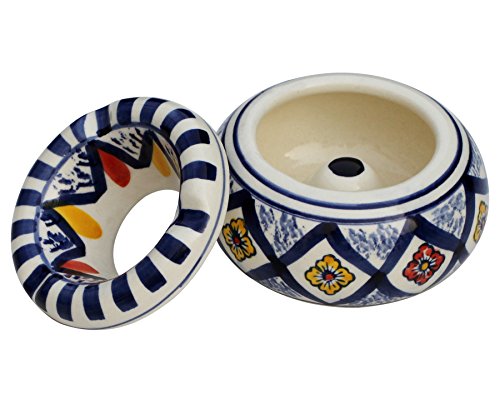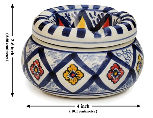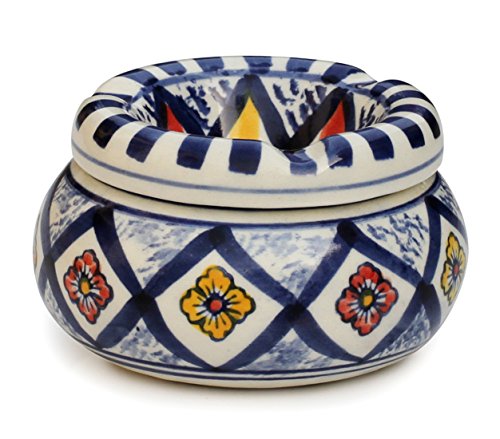 Smokeless Ashtray - SouvNear Moroccan Round Ceramic Ashtray with Lid for Outdoors and Indoors with 3 Cigarette Holder Slots