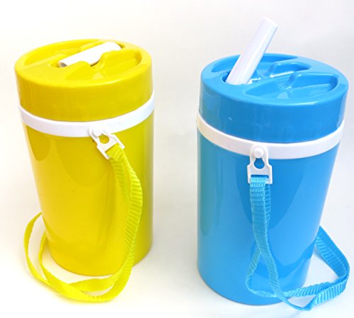 TUMBLER , THERMOS, TRAVEL, BIRTHDAY GIFT, KIDS GIFT, BLUE AND YELLOW DRINKING THERMOSES, SET OF TWO