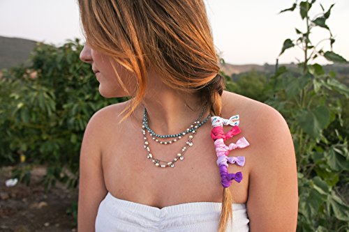 - Feature : NO CREASE Emi-Jay Inspired elastic hair ties - Everyone is Raving About This New TREND in Hair Fashion. As seen on Celebrities, these designer ties are perfect for a quick lunch workout or a night out. They leave No crease and the elastic material is PAIN FREE. No More Headaches or Ripping out your Hair with our stretchy elastic ribbon. The material is Gentle and leaves Your Hair Undamaged and Crease Free even after hours of wear and tear. / ELASTIC MATERIAL makes this a Perfect One Size fits ALL accessory. Depending on the thickness of your hair and how tight you want to hold it, these hair ties can wrap around AT LEAST TWICE and most likely a third to get just the right hold you're looking for. / 2 IN 1: IT"S JUST AS CUTE ON YOUR WRIST! Maha Love ties double as a hair tie AND a bracelet. The elastic material makes sure that it's always the PERFECT FIT. Not too loose yet not too tight so you don't lose circulation. The Fun Colors and High Quality Fabric Material Can Be Worn as a Stylish Bracelet. EASY Transition From Hair to Wrist - Looks Cute on Your Wrist 24/7 So You Always Have a Tie Handy! / PLUS Our Cute, Ready to Ship Packaging is Perfect for Every Gift Occasion. ALL Packs Include a FREE Cotton Gift Bag Perfect for Storage or Gift Giving. Guaranteed Fast Shipping -receive your product in just 2 days for Amazon Prime Members. No catches, BETTER THAN MONEY BACK GUARANTEE - see product description below for more info. / FUN LOW-PRICED VARIETY PACK of 15 Hand-Picked Designer Ties - Including flirty prints, crazy tie dyes, sexy lace, and colorful solids. You're sure to find a tie to match every outfit. THIS IS NOT A GRAB BAG. You Will Receive the exact package and colors of ponytail holders showed above so you know exactly what you're getting. Hand-dyed, Knotted, and Sealed Tips for Long Lasting Wear. Comfort and Beauty at WHOLESALE prices. Best deal around town - you get QUANTITY AND QUALITY. We don't sell glitter because they just don't work. And we only want the BEST for you. Glitter stretch out way too easily and tangle your hair. We want you getting the Best quality and most Efficient Hair Tie out there.