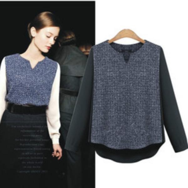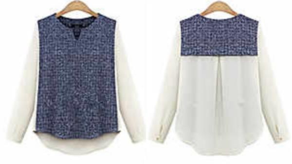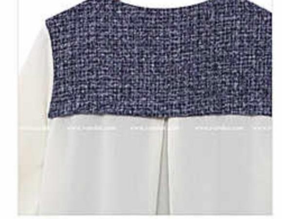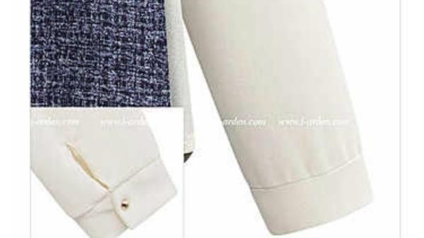 異素材ミックス ツイード シフォン 長袖 ロングシャツブラウス ホワイト