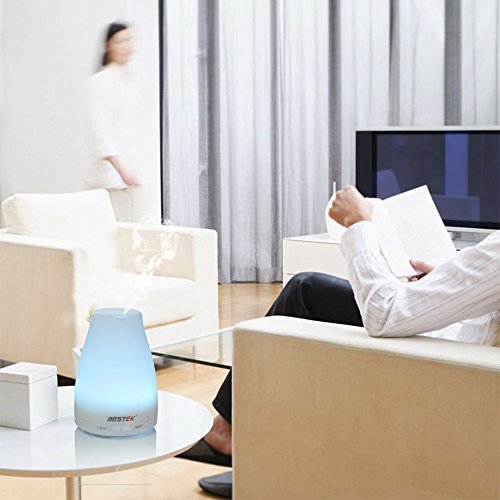 BESTEK Aroma Diffuser: Produces a cool or dry fragrant mist by the ultrasonic waves instantly vaporizing water and essential oil in the tank. Keep essential oil 100% natural without burning or heating.
