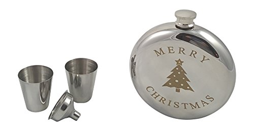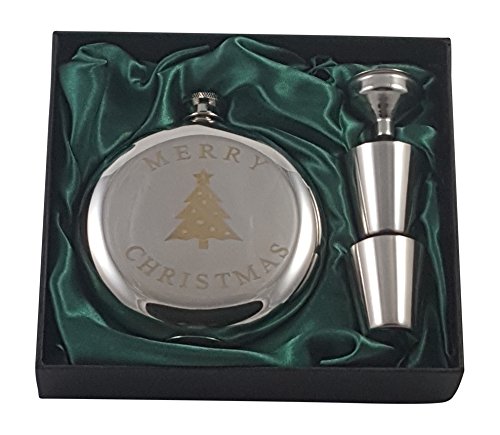 -. Feature : Not sure what to give someone this holiday season? Check out this Christmas themed flask gift set. / Unique look - Stylish, round-designed flask holds 10 oz of your favorite beverage engrave with a Christmas Tree and the words "Merry Christmas". / Everything you need - With two shot glasses and a funnel, you won't lose a drop of your favorite beverage. / Rust resistant - Flask is made of a specially formulated grade stainless steel to avoid rust with a polished shine. / Great gift - Give a gift that is sure to impress. Perfect for someone who enjoys a drink - family, friends, colleagues, or clients. This set is great for Secret Santa, White Elephant and Yankee Gift Swaps.