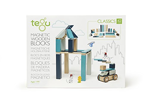 Tegu Blocks are built to foster curiosity. The mystery of magnets offers an experience that starts with marvel and joy. The very first "click-clack" of two blocks coming together sparks an instant magical discovery. Simple magnets and blocks become so much more, and Boundless Play is off and running. Tegu has reinvented the wooden block in a way that brings new life to a favored classic. By safely embedding magnets into each piece, Tegu Blocks become curiously attractive for both kids and kids at heart. Defy gravity and push your imagination in ways never before possible. No instruction manuals or electronics; just toys that demand imagination and inspire limitless creativity across all ages. Open-ended play is endangered, but we're bringing it back. Created with beautiful sustainably sourced hardwoods and safe water-based finishes, these blocks have proven wildly addictive for kids (and kids at heart) and will encourage the simple joy of creating for generations. This set includes 42 blocks in nine shapes: 4 Tall Columns, 4 Medium Columns, 6 Short Planks, 6 Long Planks, 6 Mega Planks, 6 Cubes, 2 Parallelograms, 4 Short Angles and 4 Wheels.Feature