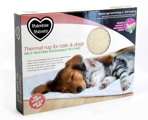-. Binding : Misc. -. Brand : Valentina Valentti -. EAN : 5055567801336 -. Feature : Valentina Valentti Self Heating Pet Pads are a great innovation. They use space age technology, super reflective thermal insert that reflects your pet's body heat back towards them. Made of super soft faux lambswool upper material that is easily removed for washing, bottom part uses a non-slip base for stability. The pads fit all popular sizes of dog crate or can be used on its own on the floor. Easy wash and care. -. Label : Valentina Valentti -. Manufacturer : Valentina Valentti -. MPN : 83-610R-5F0Y -. PackageQuantity : 1 -. PartNumber : 83-610R-5F0Y -. ProductGroup : Pet Products -. ProductTypeName : PET_SUPPLIES -. Publisher : Valentina Valentti -. Studio : Valentina Valentti -. Title : Valentina Valentti Self Heating Thermal Pet Pad, Rug or Bed for Cats and Smal...