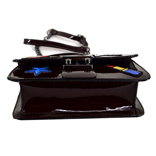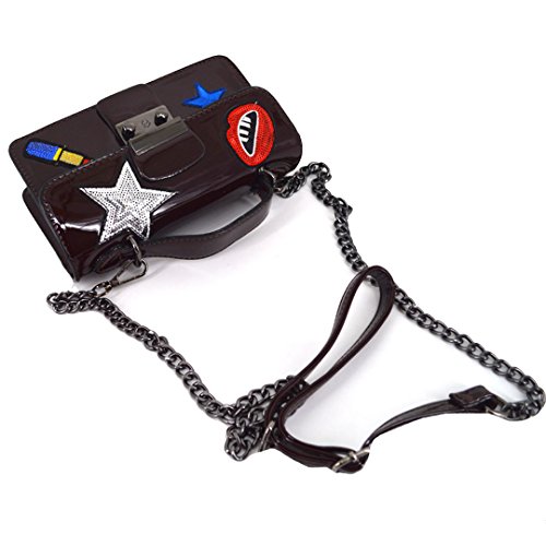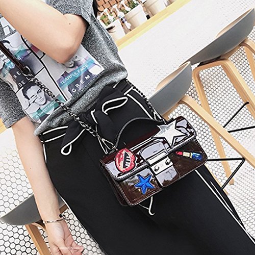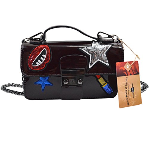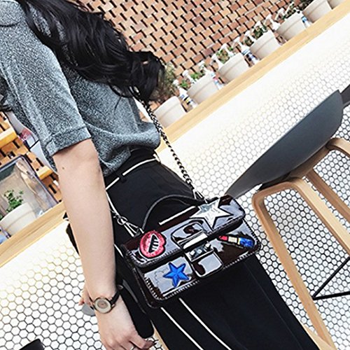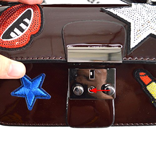 Made of sturdy PU leather and the lining is wear resistance polyester, durable and practical. The mouth, star and sequin lip gloss shape stickers patched in the front, vivid and lovely, adds brightness and sweetness to the bag. The patch sticker handbag design, trendy and stylish, compact in size but large capacity for cell phone, makeup case, wallet, mirror, cash, keys. The convenient buckle closure, convenient to take out or put in. Can be used as a clutch purse, envelope handbag, shoulder bag or a crossbody bag, with removable chain shoulder strap, one convertible bag for many occasions.
