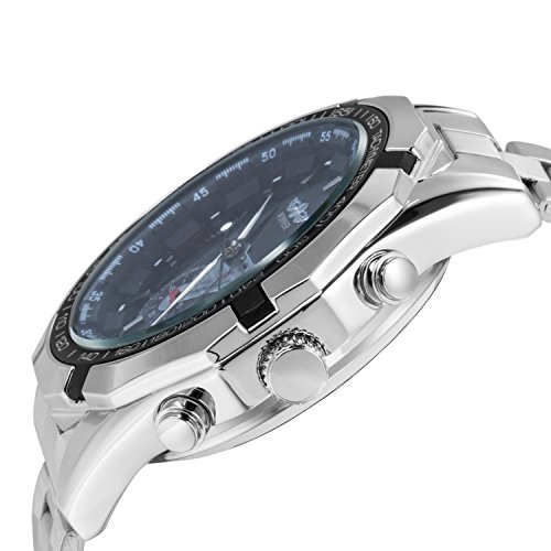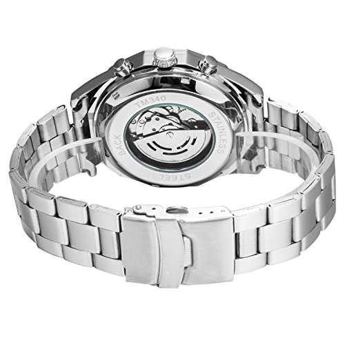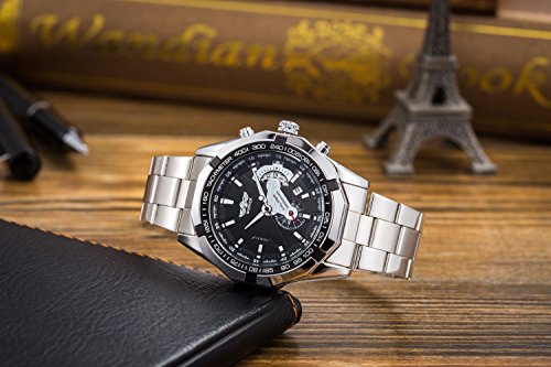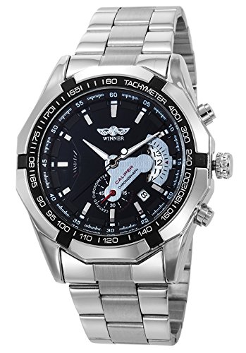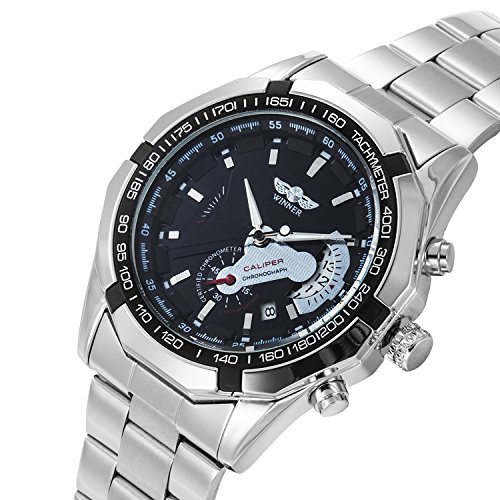 GuTe Mechanical Gute출품 tachymeter 싸 멋있 상하 일시(임시) 버튼 스테인레스 밴드 블랙 맨즈 자동 감기 손목시계