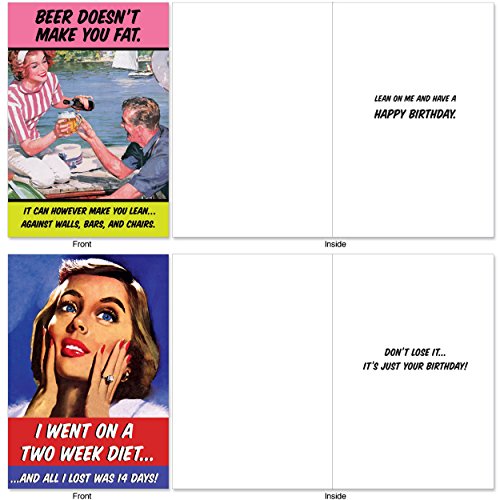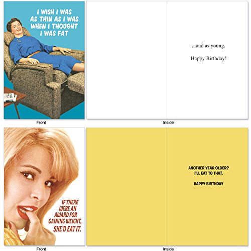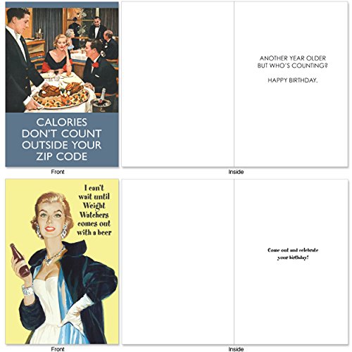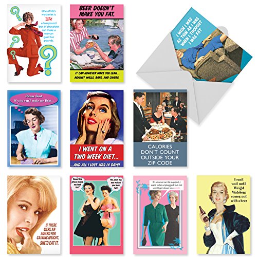 A1249 WEIGHT IS OVER: Assorted Box Of 10 Hilarious Birthday Cards, W/12 Envelopes (10 Designs, 1 Card Per Design)