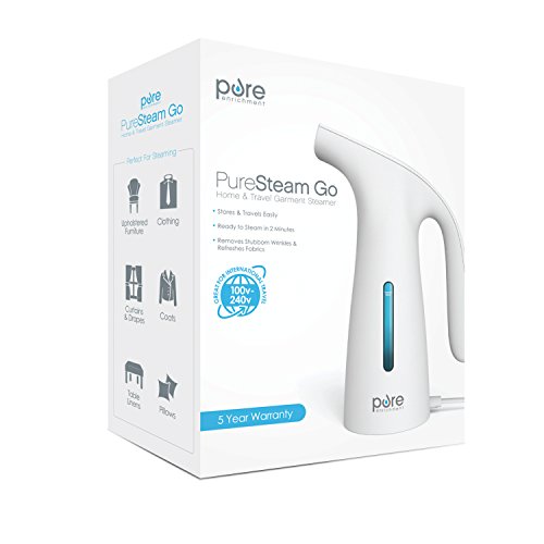 PureSteam Go – Home & Travel Garment Steamer With Fast-Heating 180ml Tank – Provides 10 Minutes of Continuous Steam to Dewrinkle Clothes, Linens, & Curtains – Ideal for Domestic & International Travel